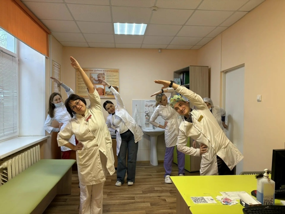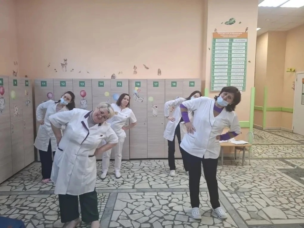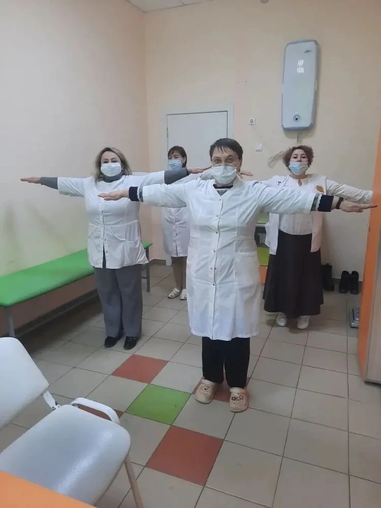 Ежедневно во всех структурных подразделениях поликлиники в рамках проекта «Зарядись!» проводятся утренние зарядки